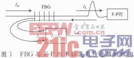 因为F-P腔有温度-压力交叉敏感性能实现对温度的补偿,能使测量精度提高,故可采用F-P腔与FBG串联复用传感器的解复用。其结构如图1所示。