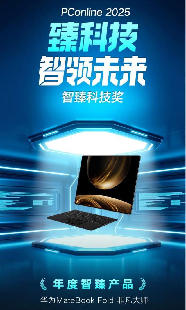 也正因如此,华为MateBook Fold 非凡大师在科技媒体年度评选中屡获认可,先后斩获PConline 2025智臻科技奖“年度智臻产品”、年度技术创新折叠电脑、年度技术创新笔记本等多项大奖。这些荣誉并非只针对某一项技术突破,而是对其整体创新价值与行业示范意义的集中肯定。