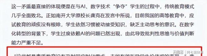 这种被动接受信息的习惯,导致学生缺乏批判性思维,南开大学原校长龚克也指出了这个问题,应试教育的顽疾还在,学生习惯了背标准答案,但现在AI能提供无数个标准答案,学生反而不会选了。